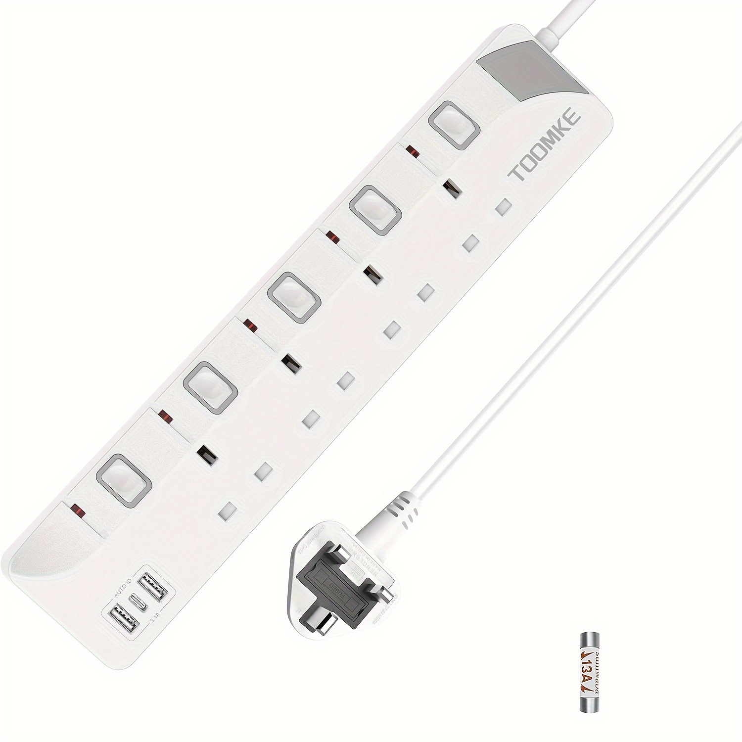 TEMU Toomke 4-gang 3 Usb Power Strip With 5 Indepe...