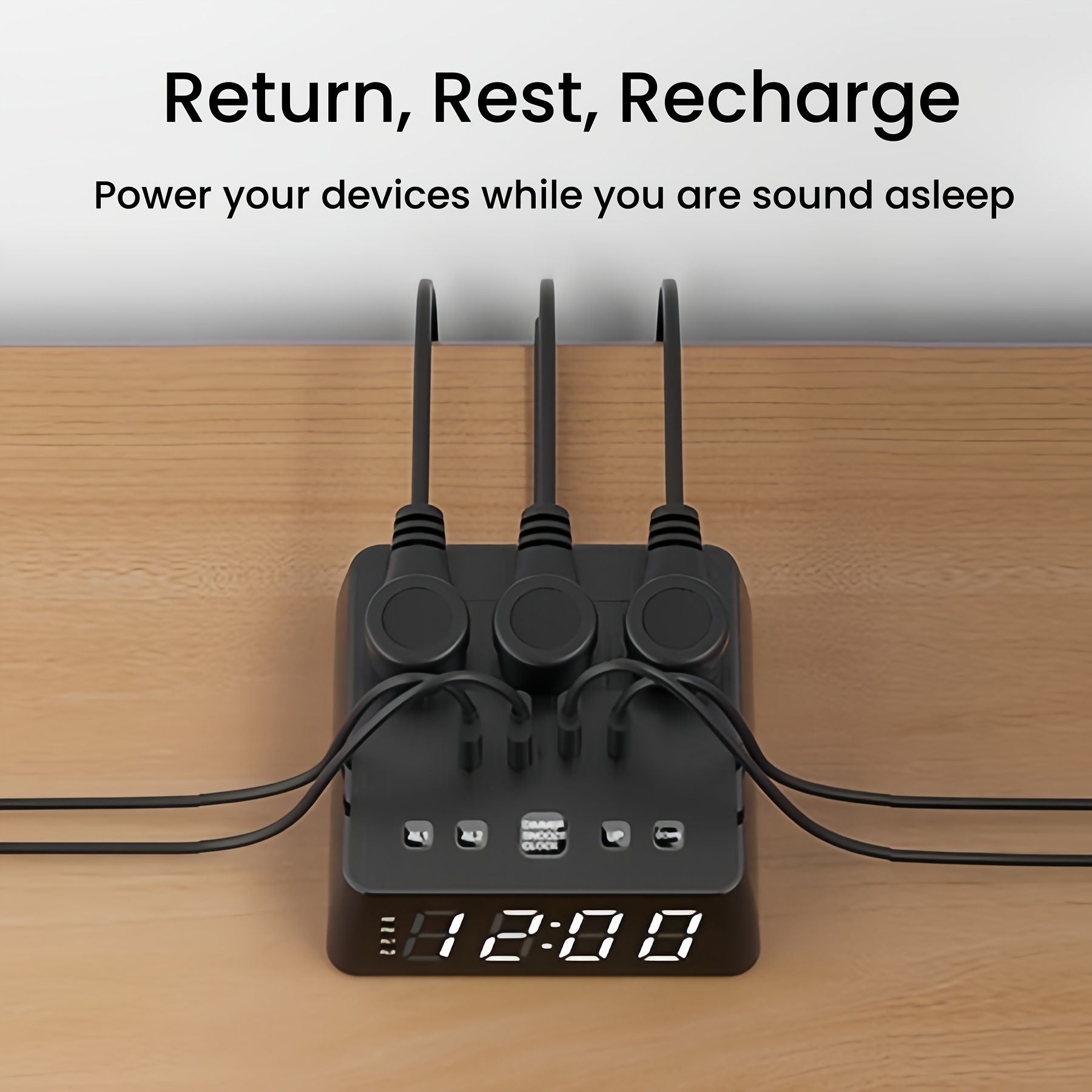 TEMU Power Strip With Alarm Clock, 3 Outlets, 4 Us...