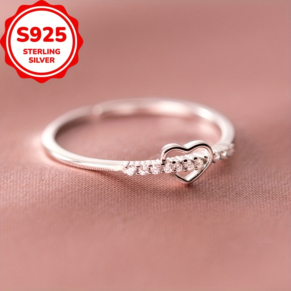 TEMU 1pc 925 Sterling Silver Heart Shaped Promise ...