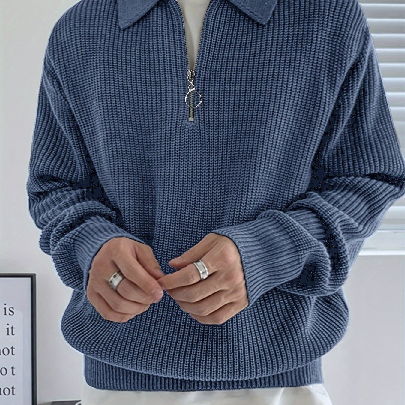 TEMU Men's Casual Half-zip Mock Neck Sweater - Sof...