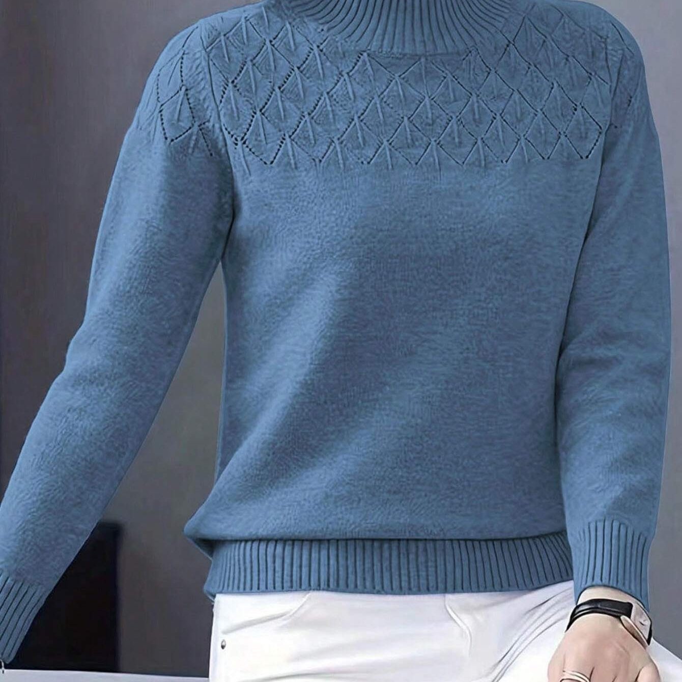 TEMU Pattern Mock Neck Knit Sweater, Casual Long S...