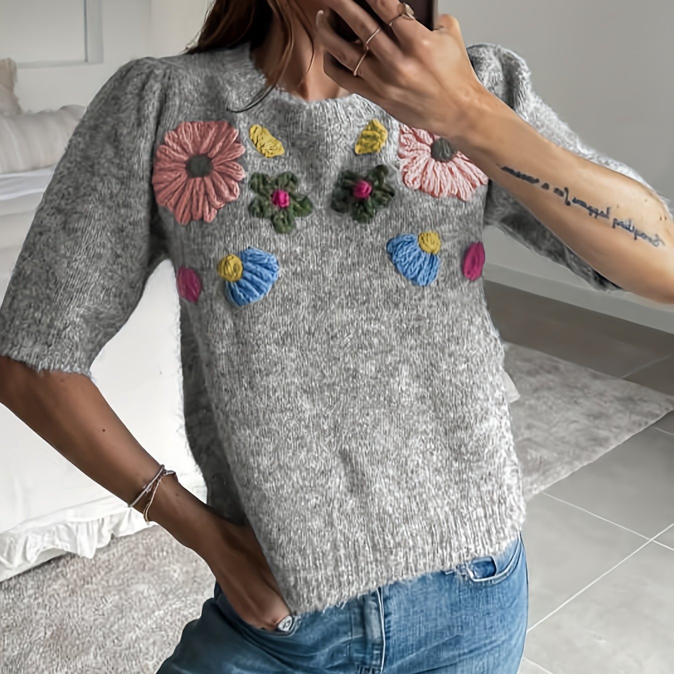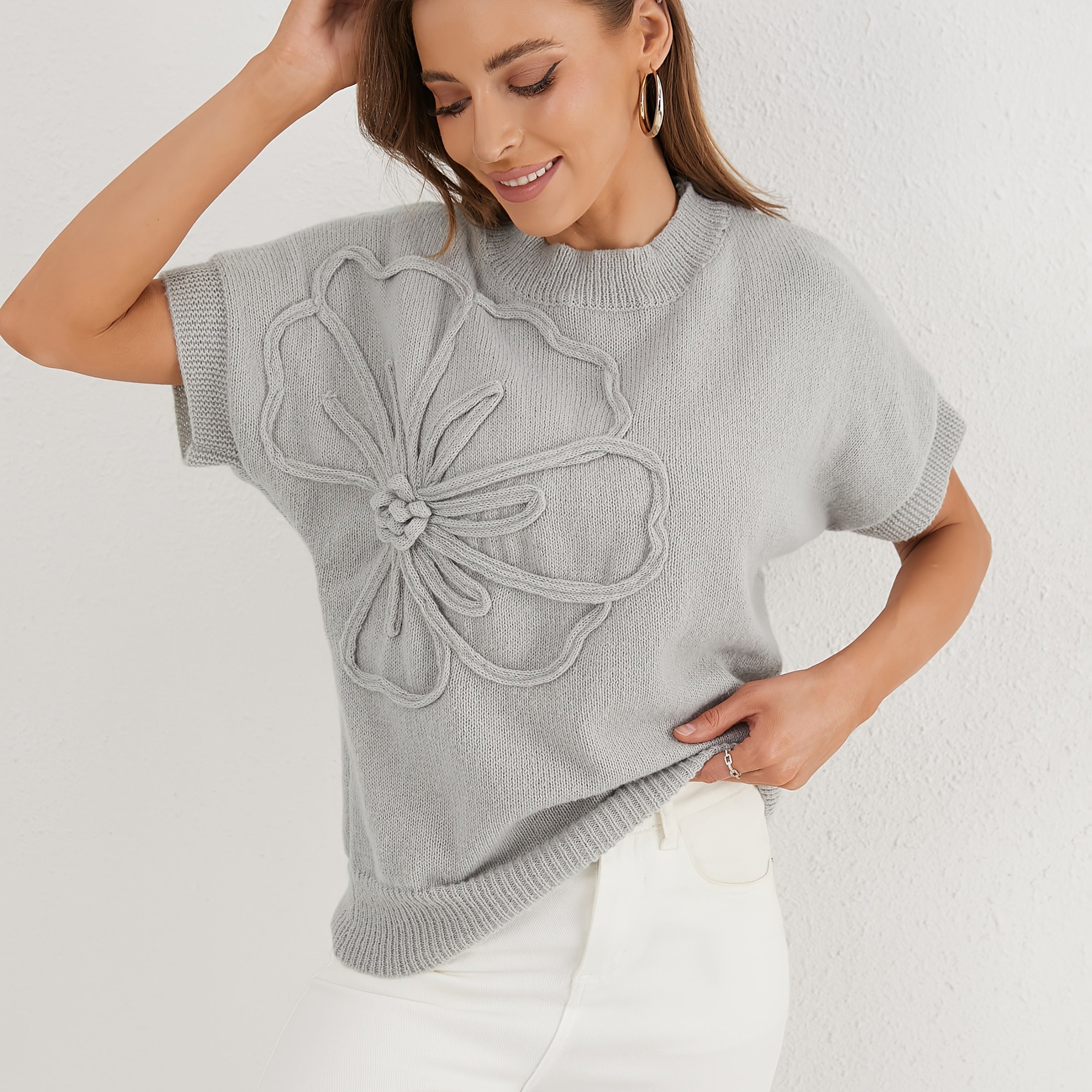 TEMU Elegant Light Gray Knit Top For Women - Short...