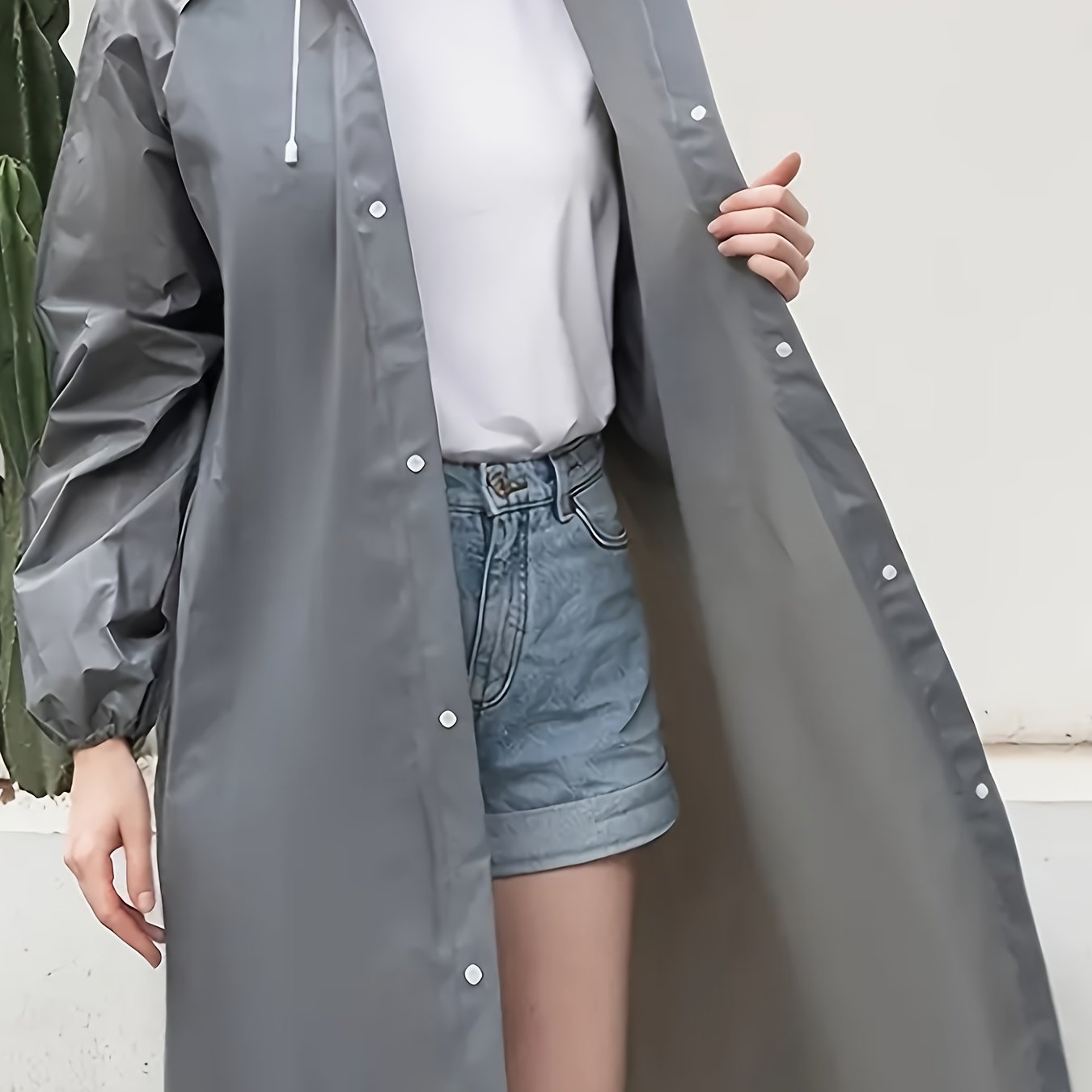 TEMU Gray Eva Raincoat - Windproof, Waterproof, Fu...
