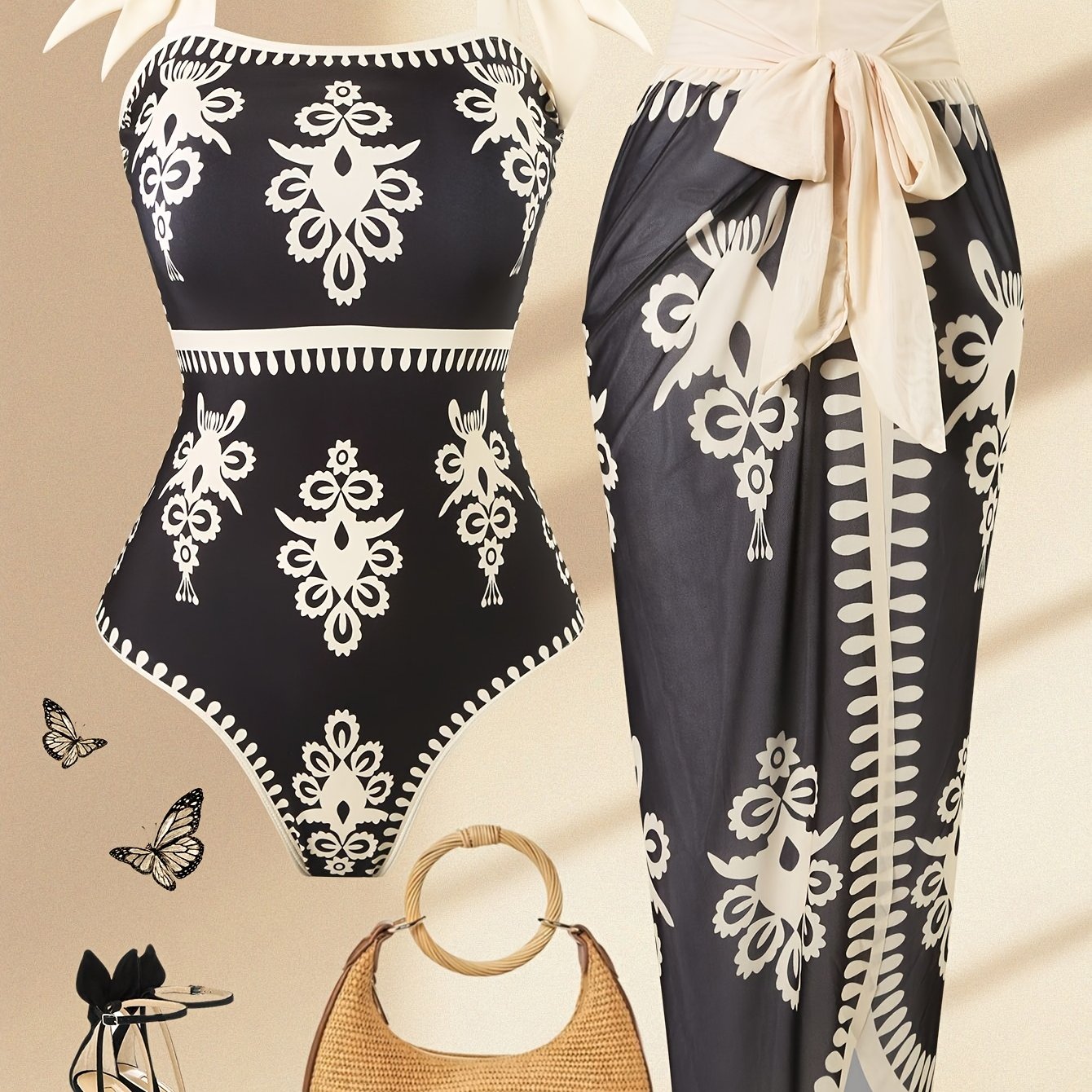 TEMU Sexy Einteiliger Badeanzug mit Rock-Set