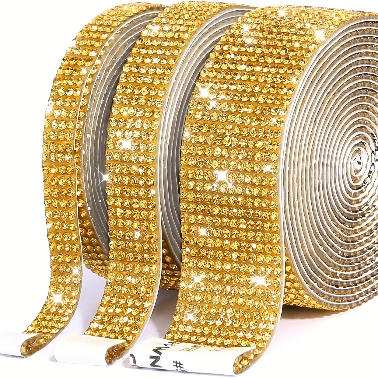 TEMU Golden Sparkle Rhinestone Ribbon Roll Set, 3-...