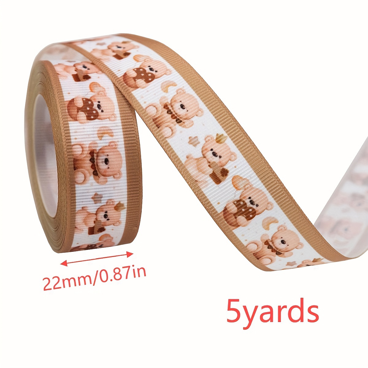 TEMU 5 Yards 22mm Teddy Bear Printed Grosgrain Rib...