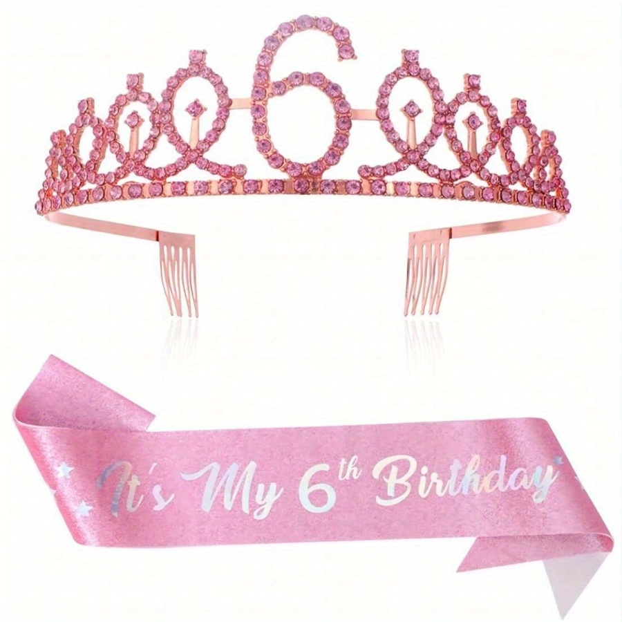 TEMU 2pcs/set Rhinestone Ribbon Tiara Birthday Ann...
