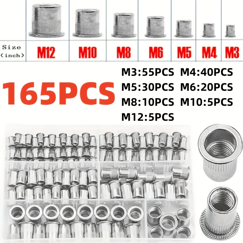 TEMU 165pcs Aluminum Rivet Nut Kit - M3 To M12 , ,...