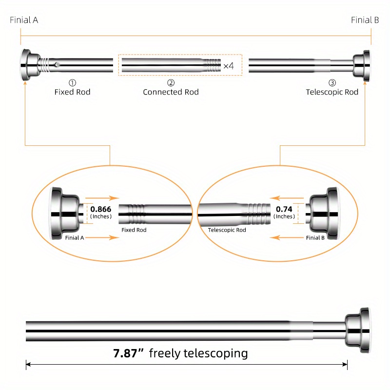 TEMU 110-200cm Stainless Steel Telescopic Rod Show...