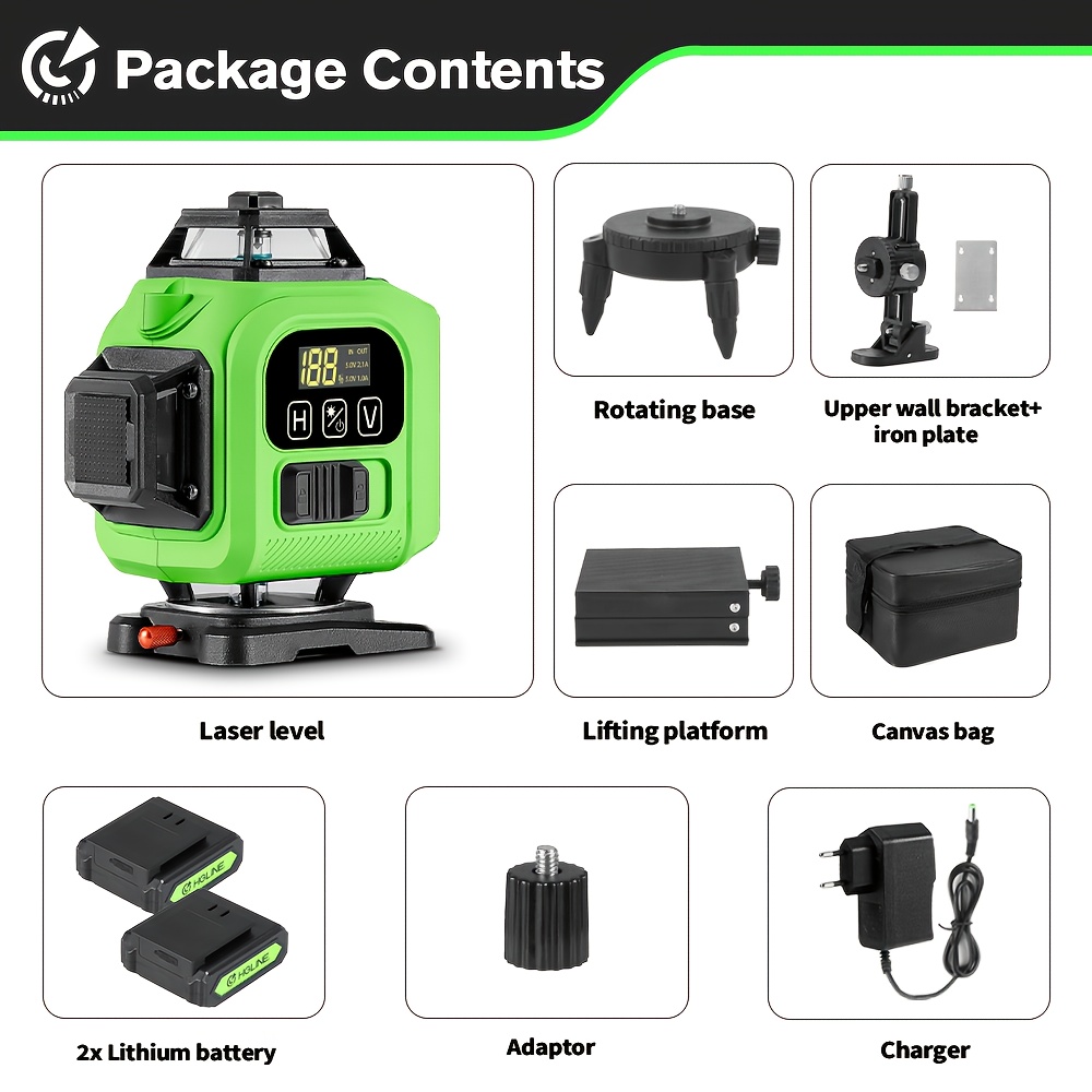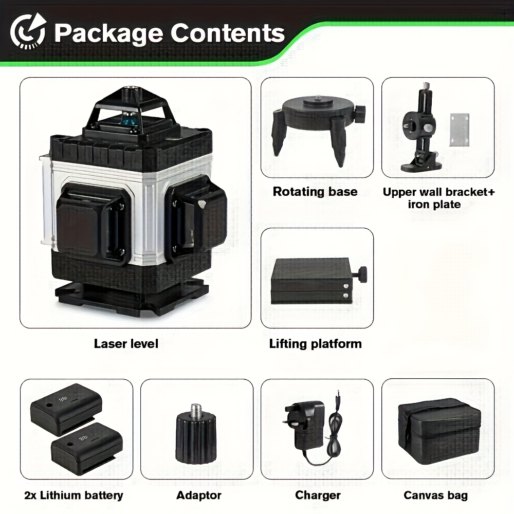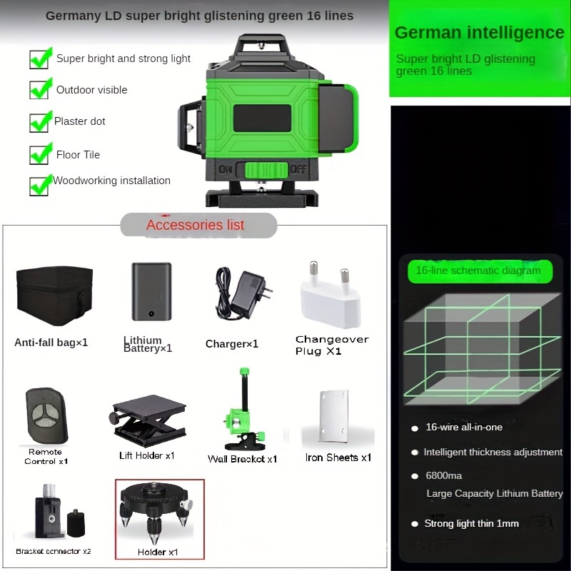 TEMU 1 Set Laser Level, 16 Green Lines, 4d Laser, ...
