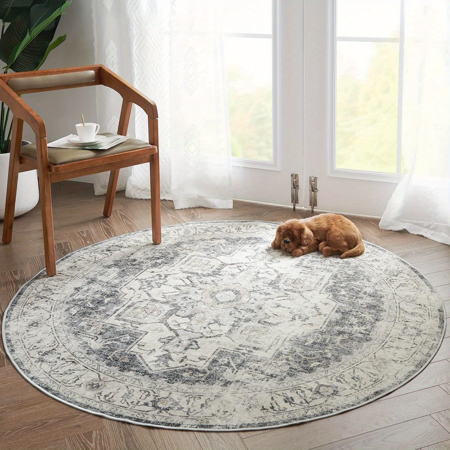 TEMU Round Rug Washable Rug Area Rug Indoor Vintag...