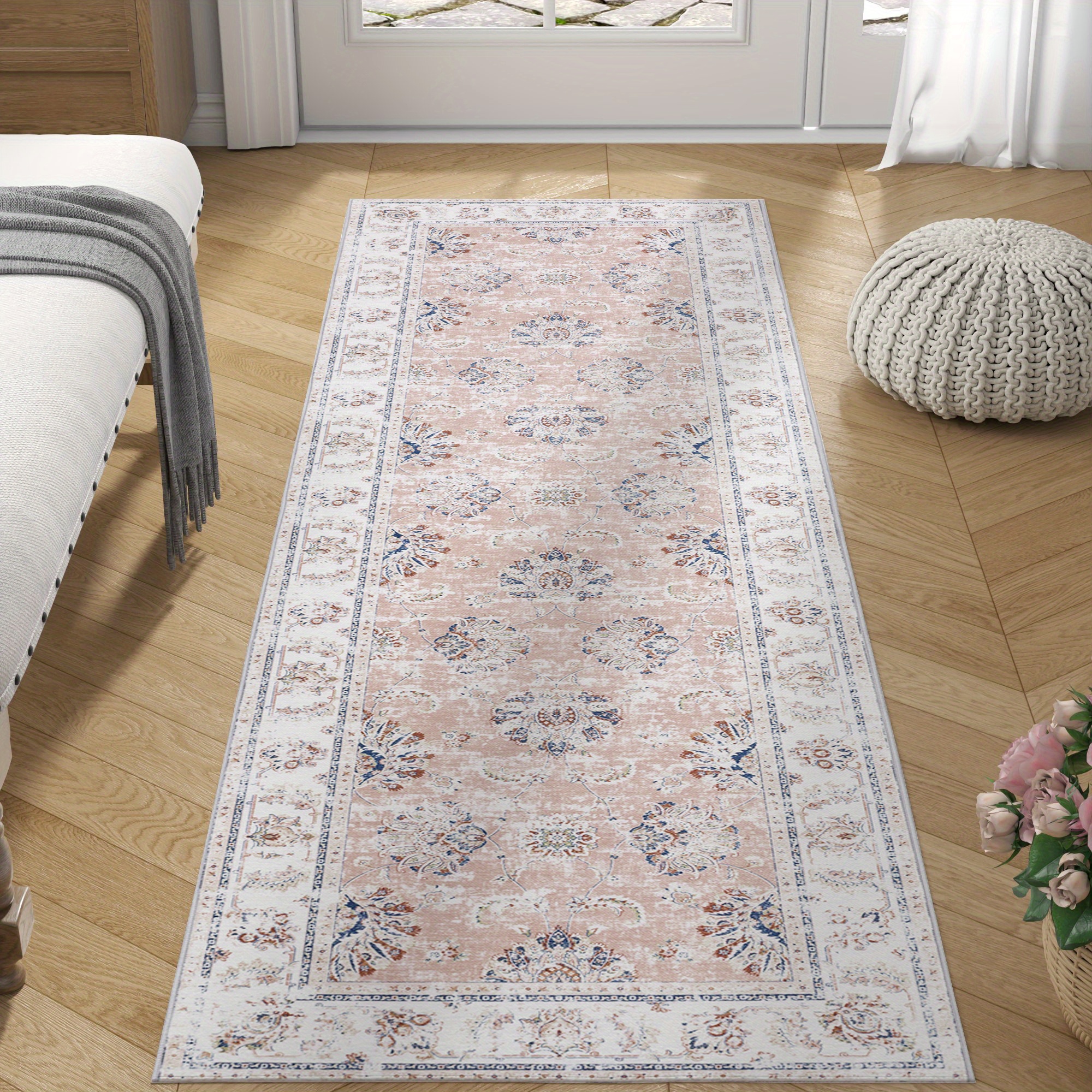TEMU Kitchen Vintage Rug Floral Print Floor Cover ...