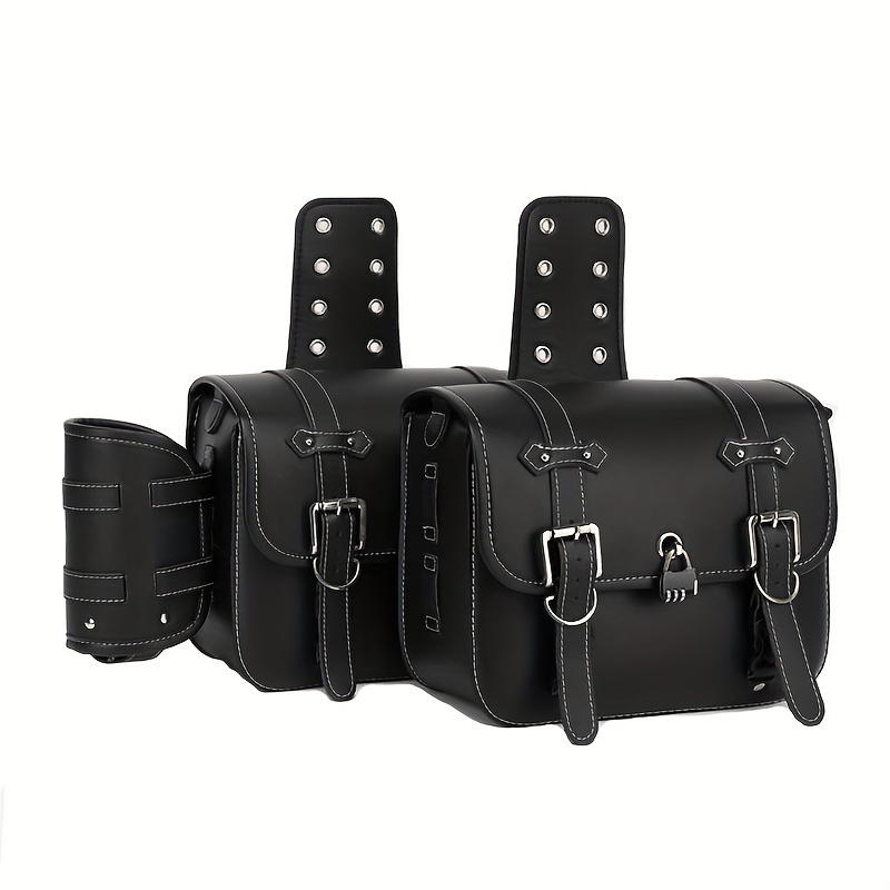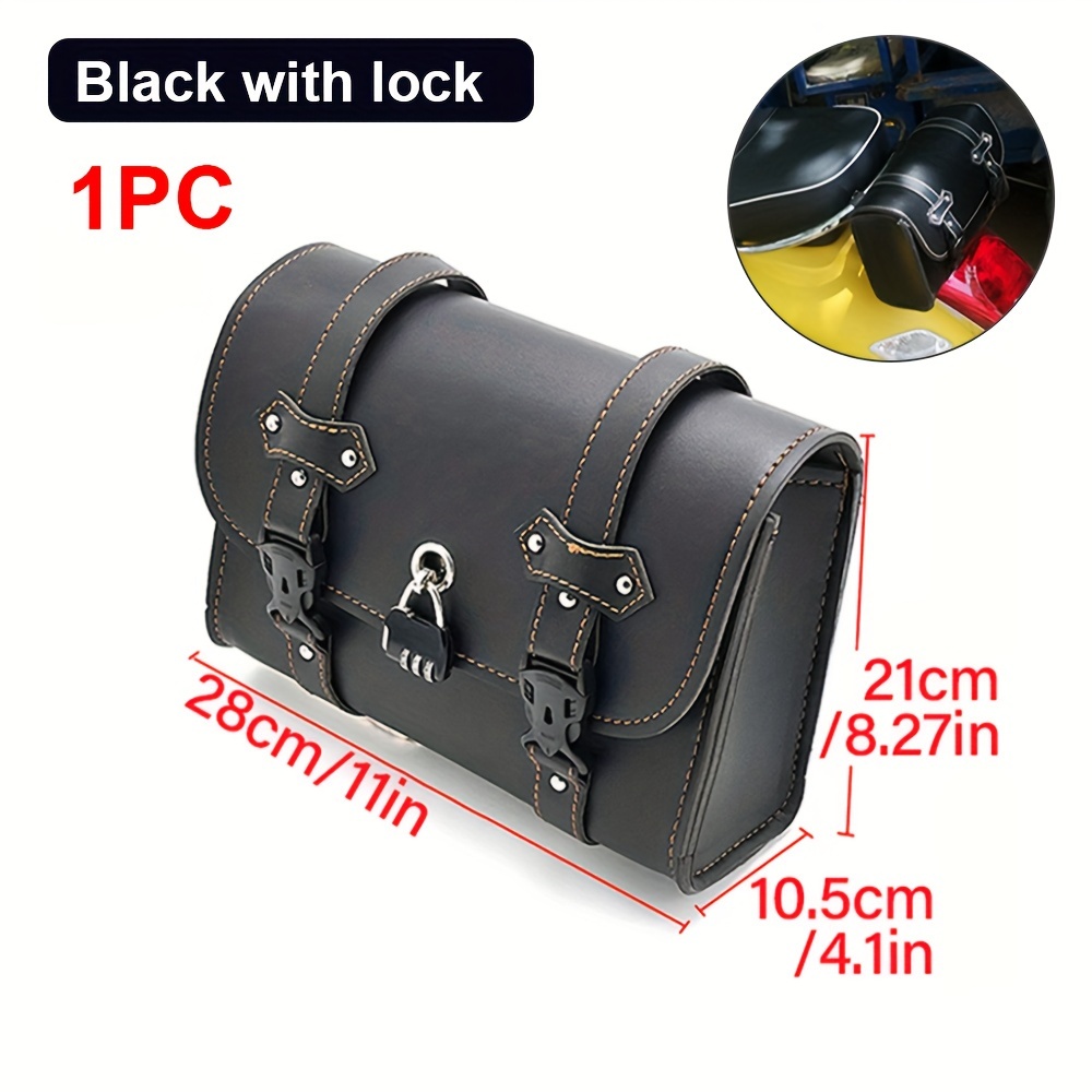TEMU Universal Motorcycle Bag - Black Pu Leather W...