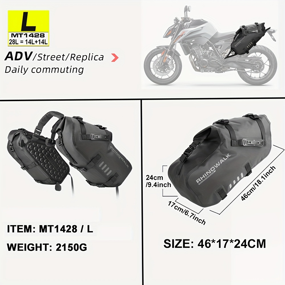 TEMU Rhinowalk 2pcs Motorcycle Saddlebag 18l/28l/4...