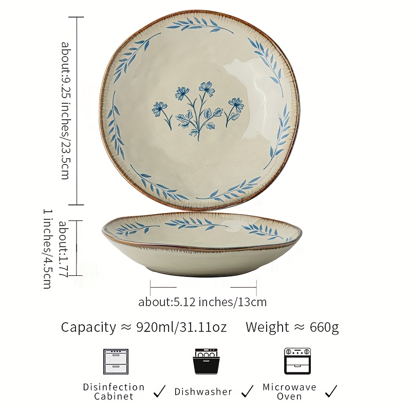 TEMU 1pc, Floral Ceramic Salad Plate With Handles,...