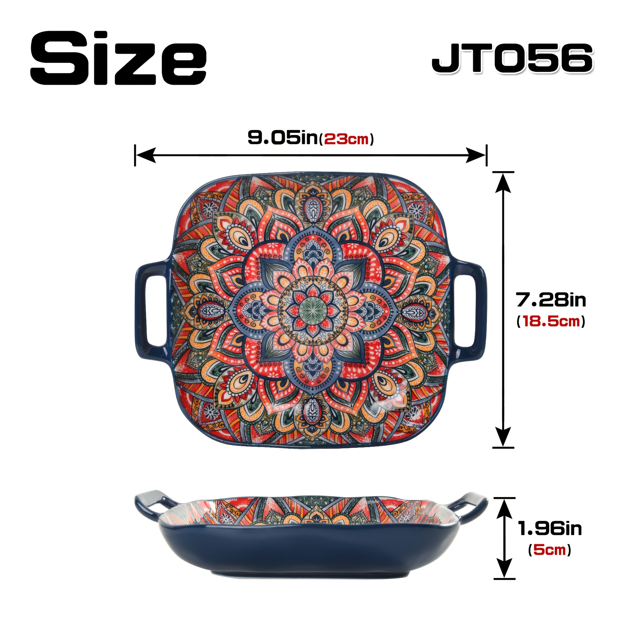 TEMU Bohemian Ceramic Salad Plate - Dual Handle Ba...