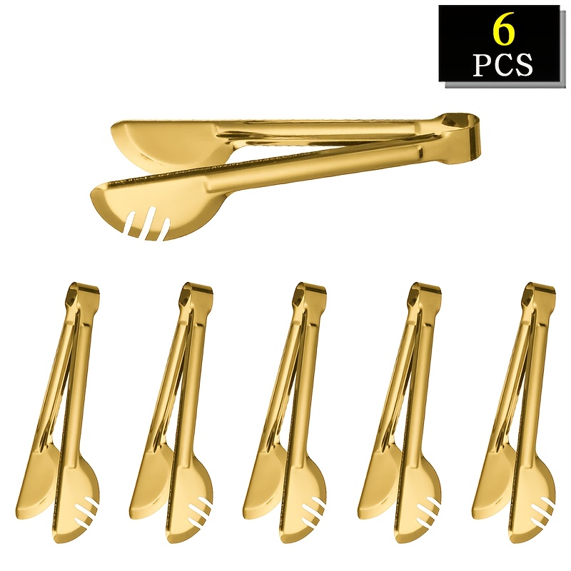 TEMU Set Of 6 Golden Stainless Steel Tongs, 9 Inch...