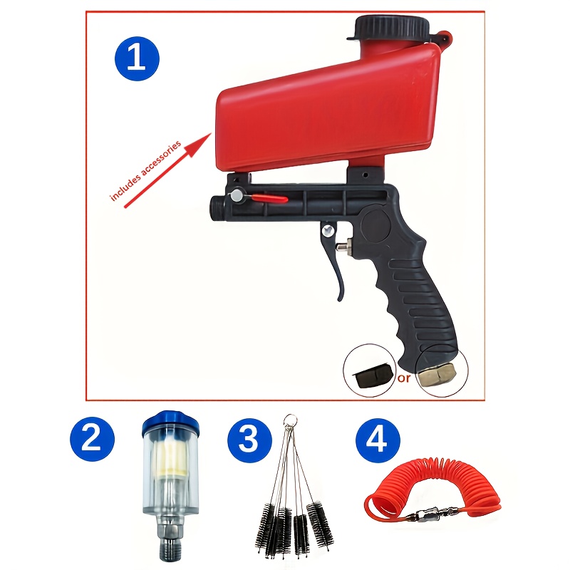 TEMU Sand Blasting Gun Sandblaster + 4x Ceramic No...