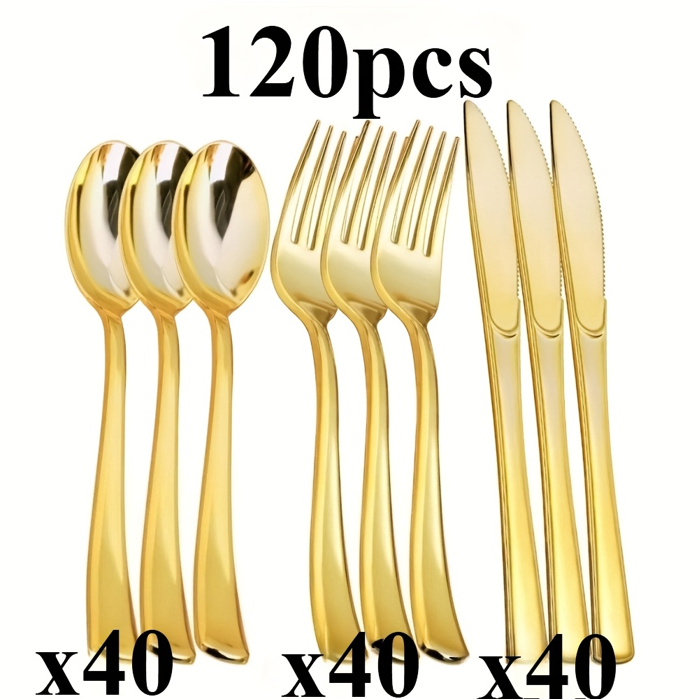 TEMU 120pcs, Golden Plastic Silverware, Golden Ute...