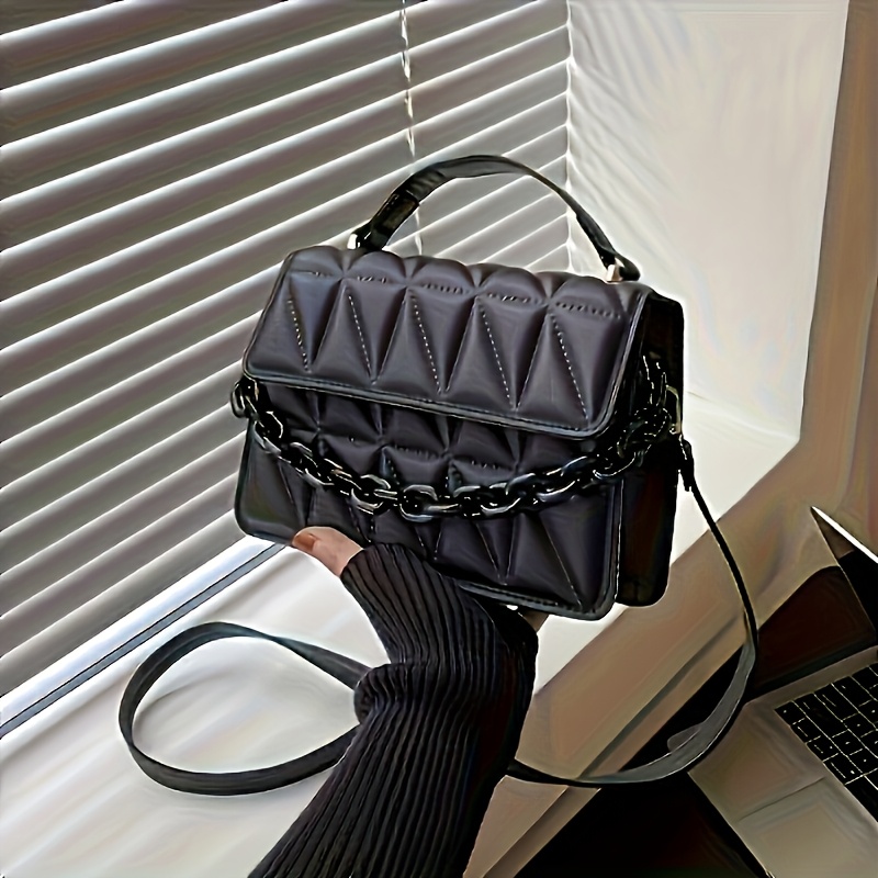 TEMU Elegant Quilted Square Handbag, Adjustable St...