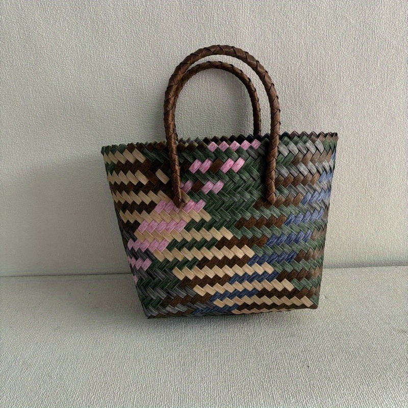 TEMU Handmade Woven Straw Satchel Handbag - Large ...