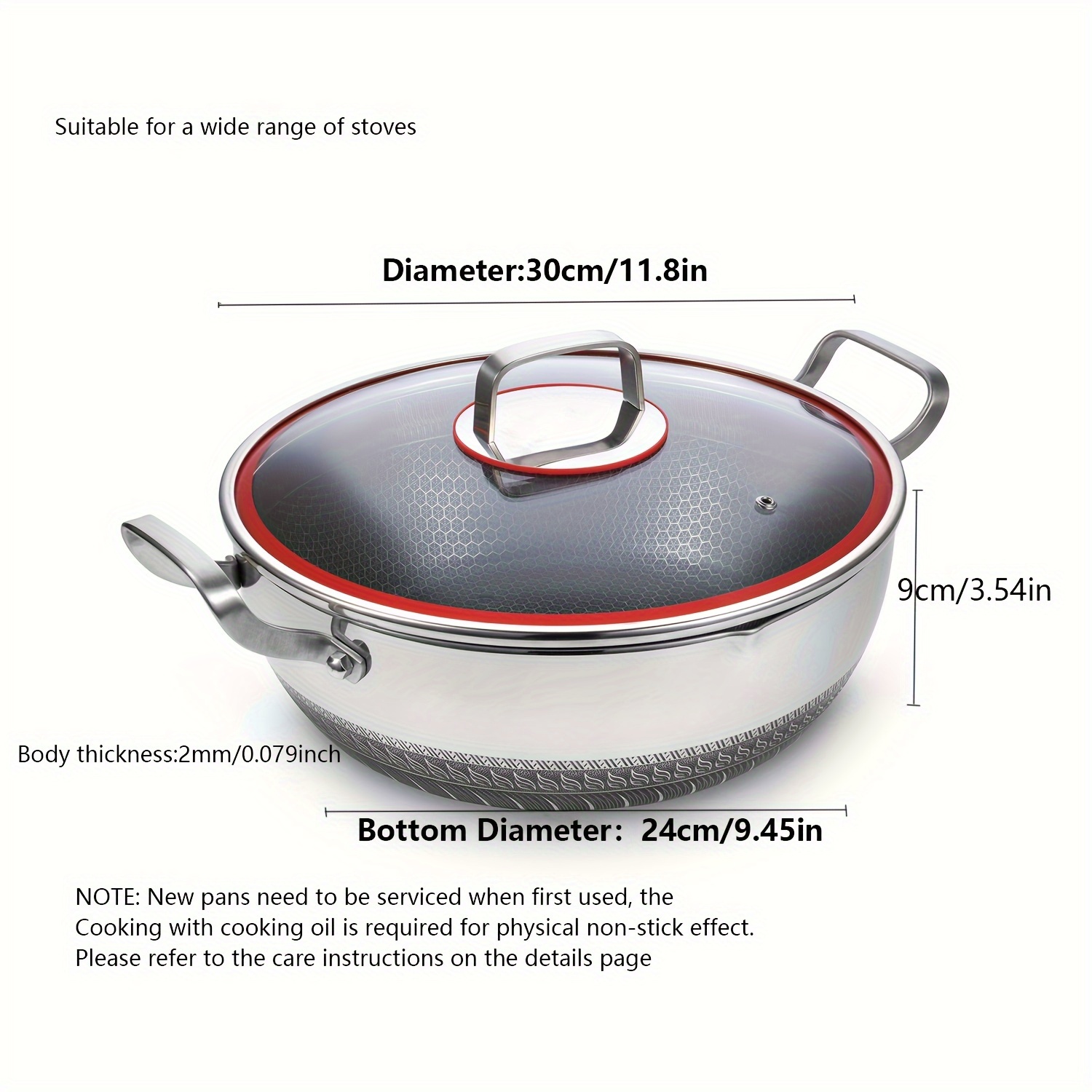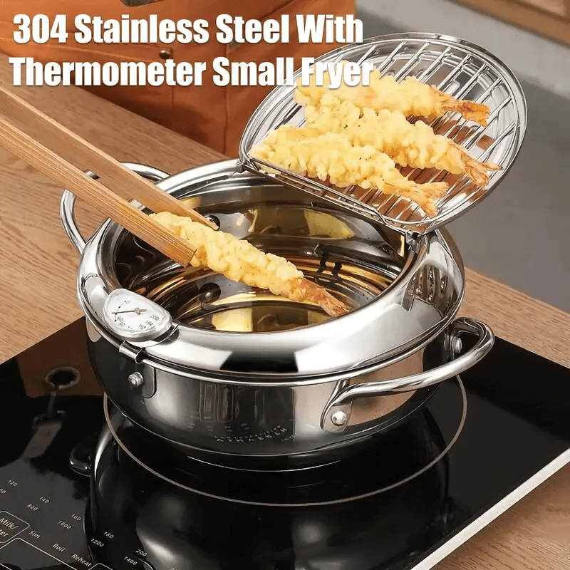 TEMU 304 Stainless Steel Frying Pan With Lid, Ther...