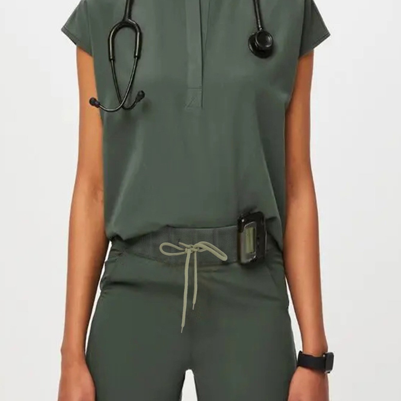 TEMU Women's Scrub Set - Soft V-neck Top With Pock...