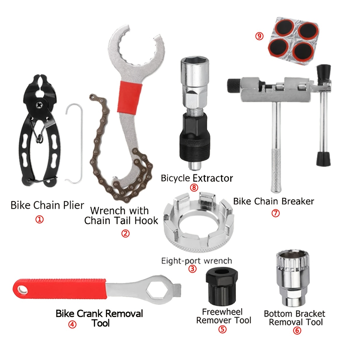 TEMU 9pcs Bicycle Repair Tool Set, Wrench + Puller...