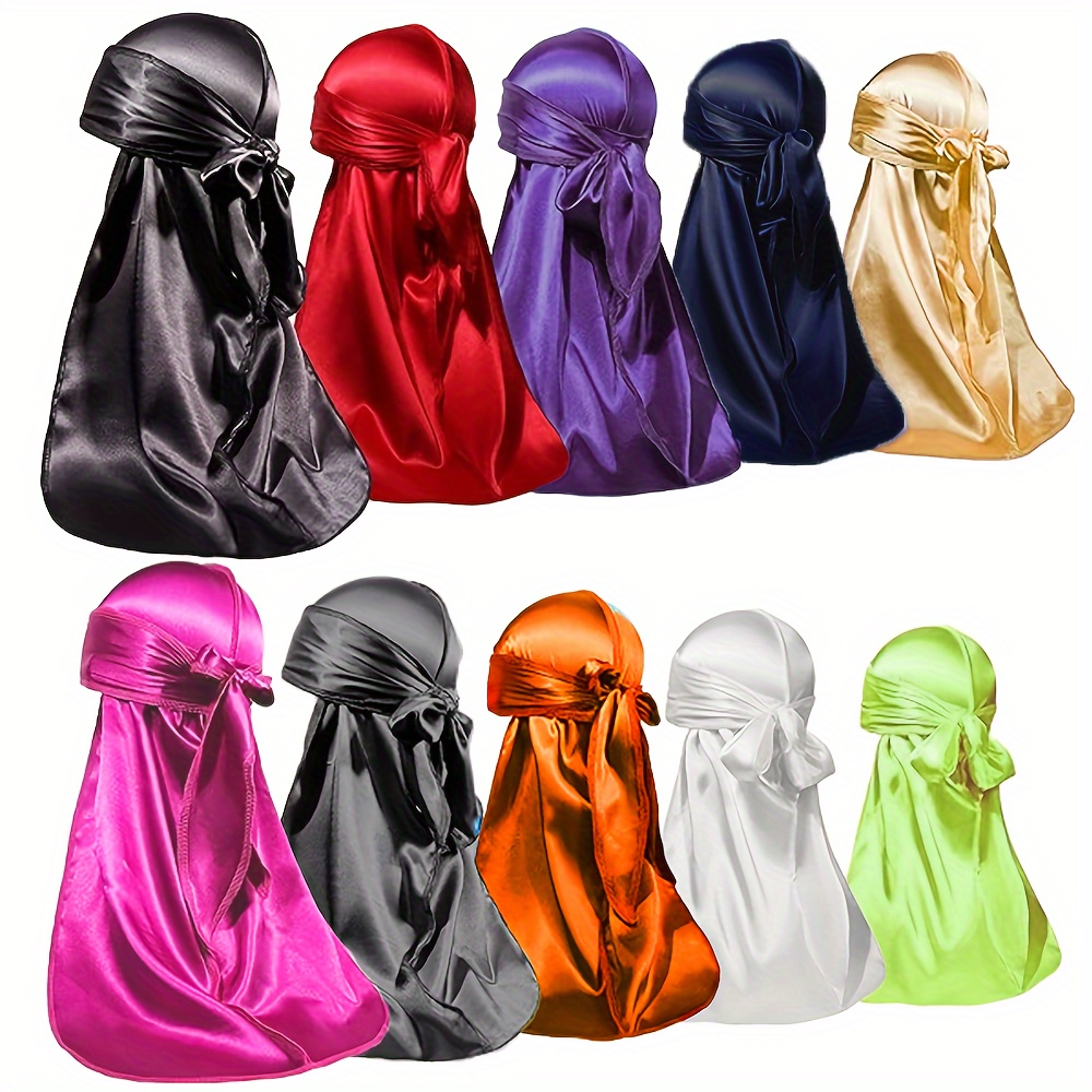 TEMU 10pcs Satin Durags For - Long Tail 360 Wave, ...
