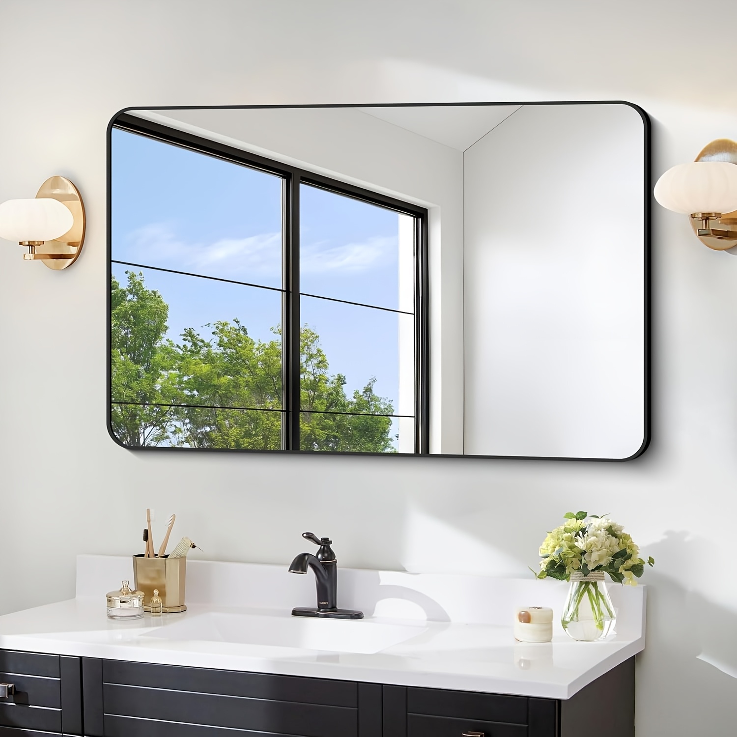 TEMU Rectangle Wall Mirror, 24x36 Black Bathroom M...