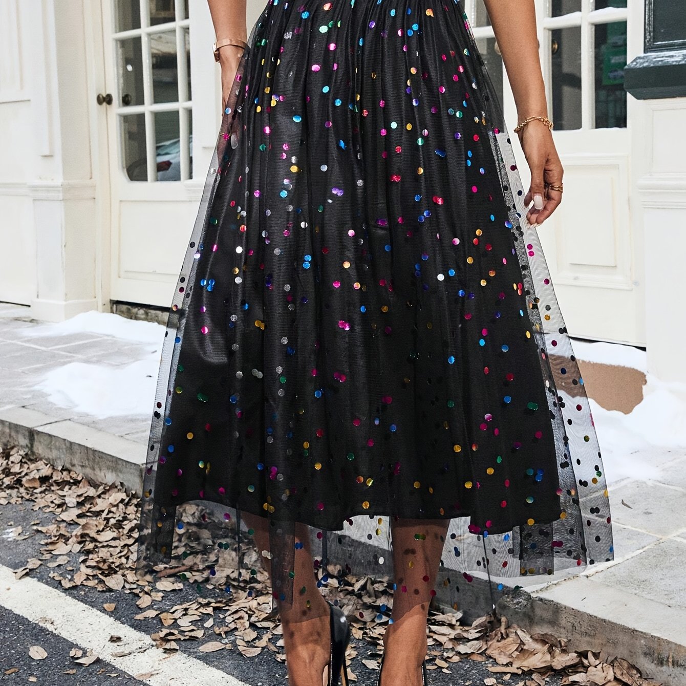 TEMU Women's Elegant Black & Multicolor Accent Dre...