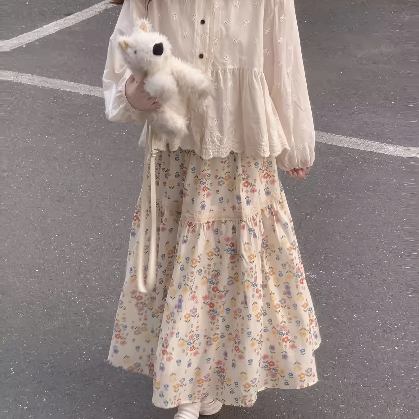 TEMU Elegant Floral Print Polyester Skirt - Casual...