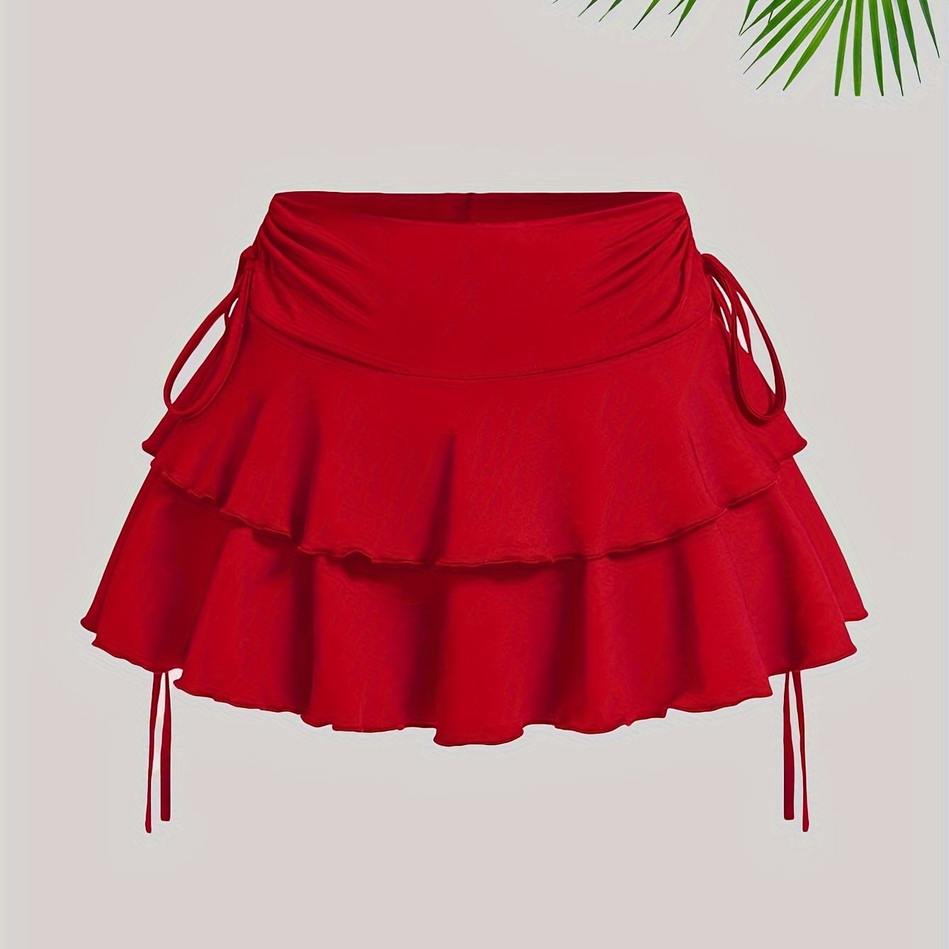 TEMU Women's Plus Size Red Pleated Casual Skirt Wi...