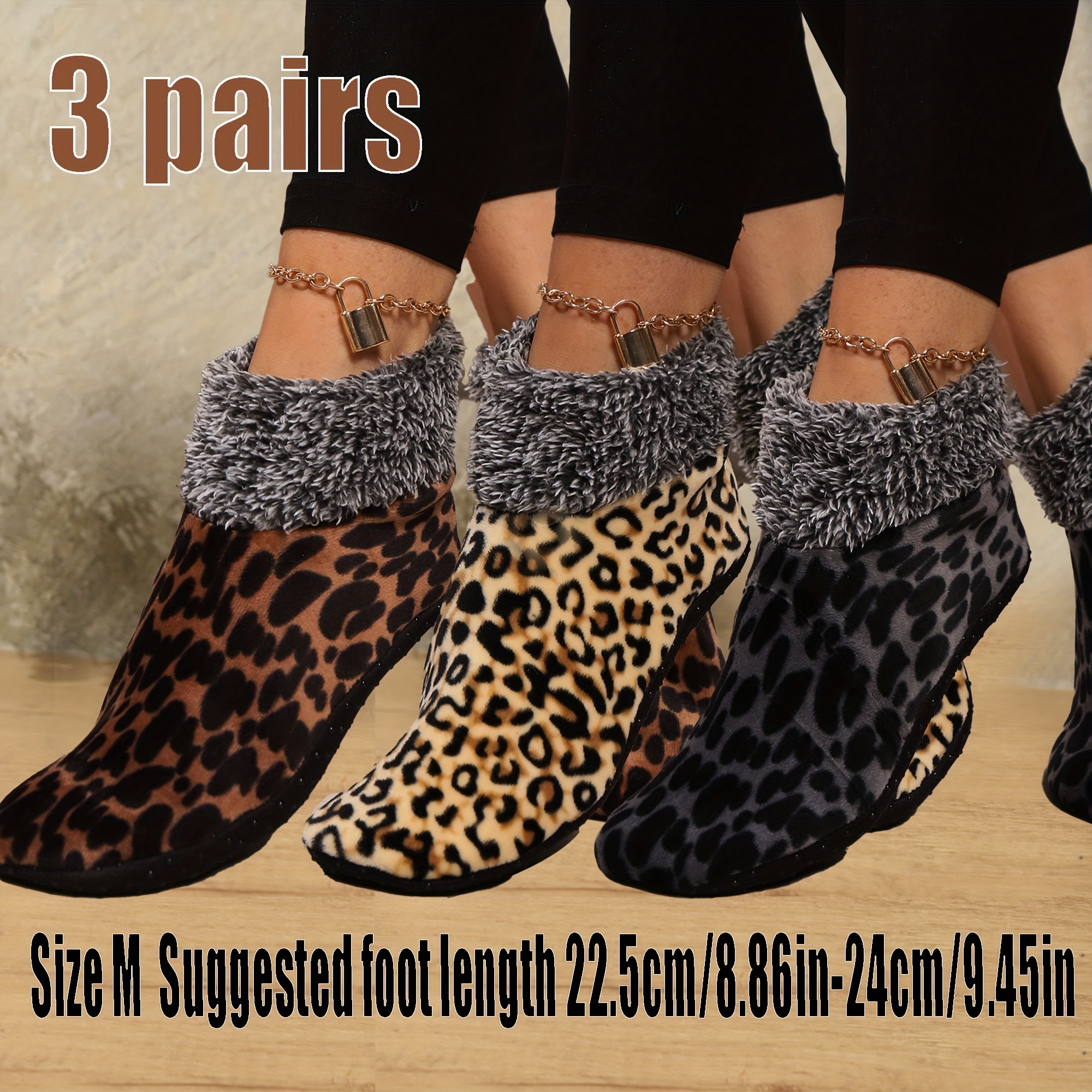 TEMU 3 Pairs Women's Leopard Print Plush-lined Ank...