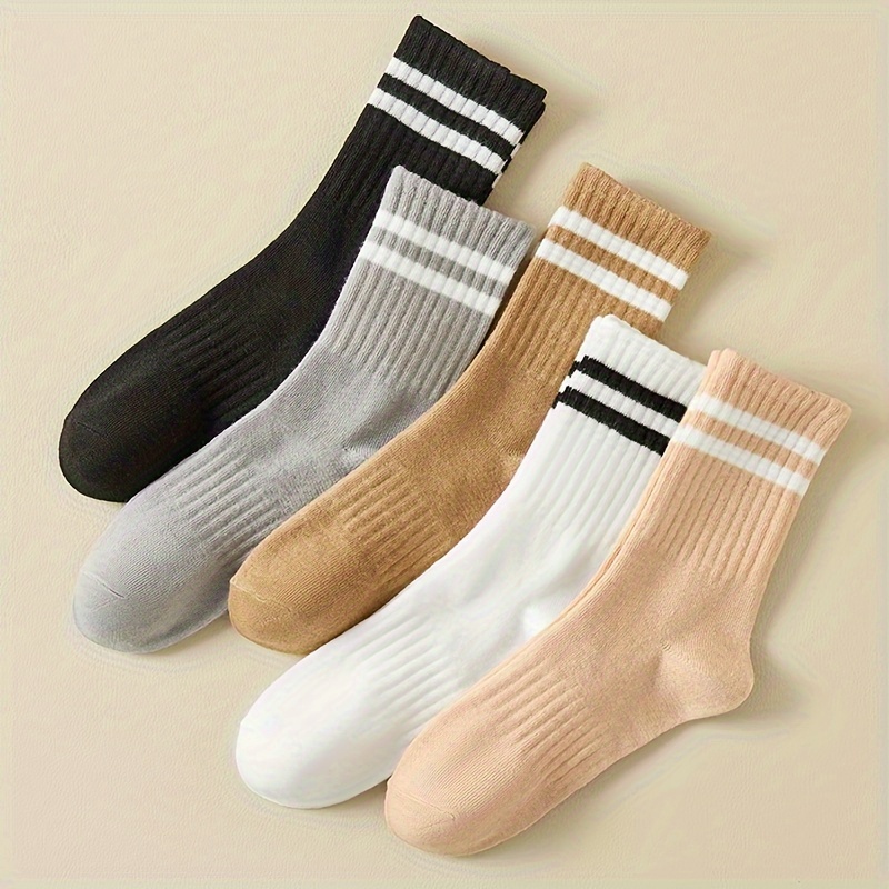 TEMU 5 Pairs Striped Print Crew Socks, Simple & Mi...