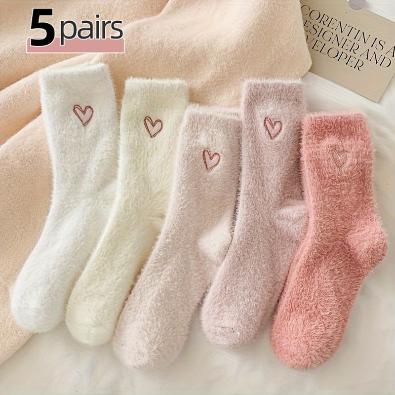 TEMU 5 Pairs Women's Plush Mid-calf Socks - Cozy ,...