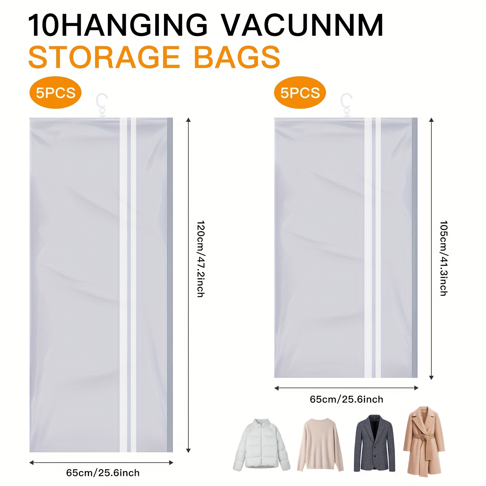 TEMU 후크가 있는 8/10개 걸이형 진공 보관 가방 - 재킷, 정장, 드레스 및 옷을 ...