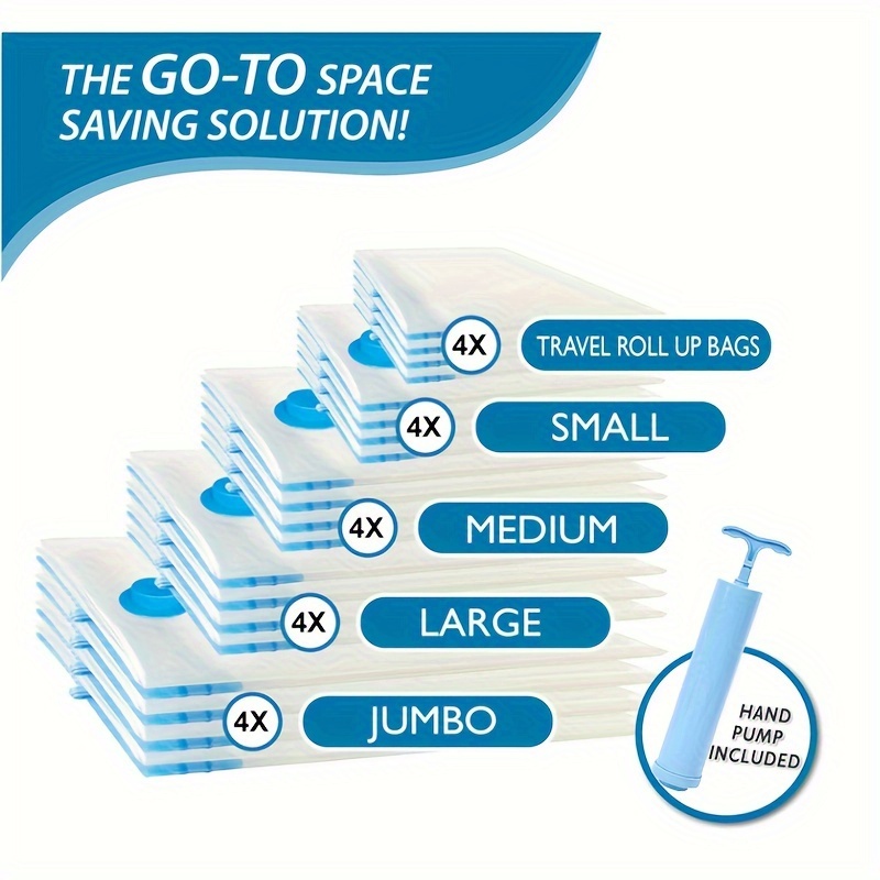 TEMU 5pcs Vacuum Storage Bags - Hand Roll, Sealabl...
