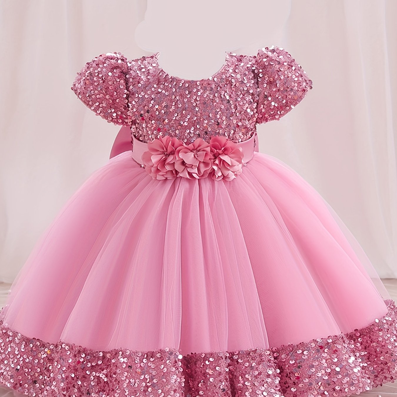 TEMU Gorgeous Sequin Flower Decor Puff Short Sleev...