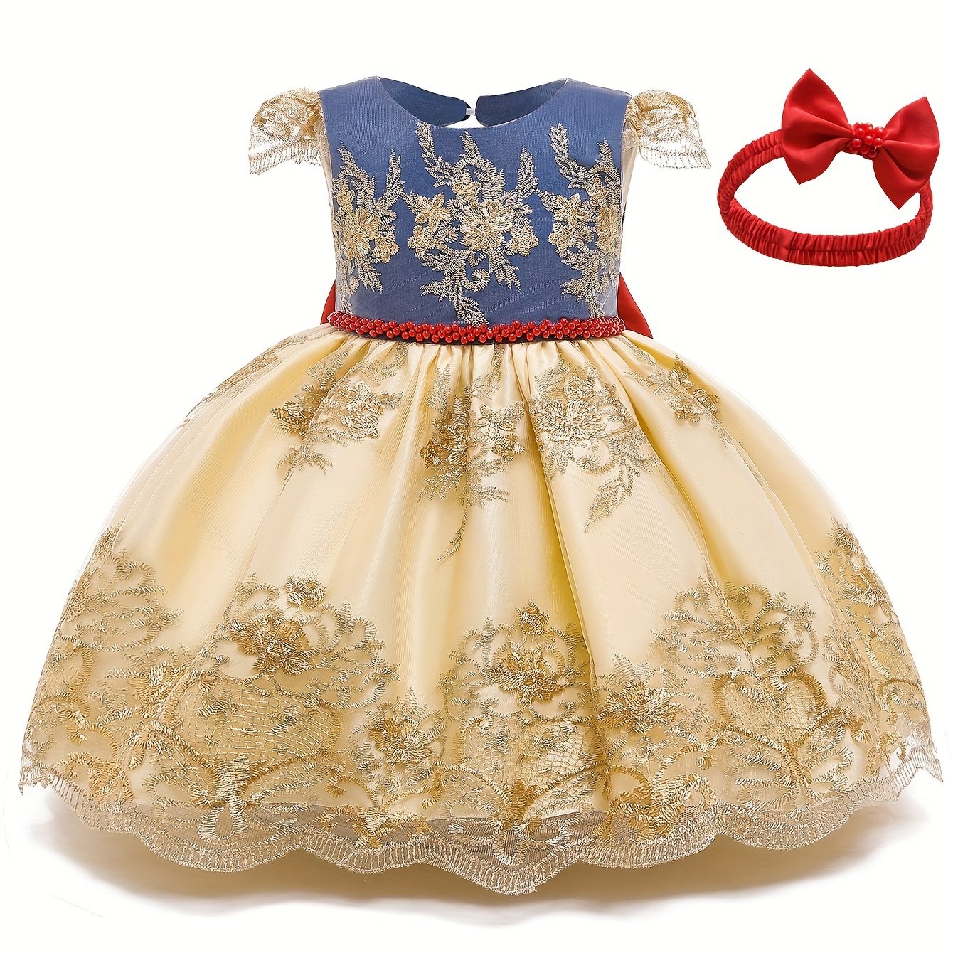 TEMU Girls' Beaded Embroidery Sequin Evening Dress...