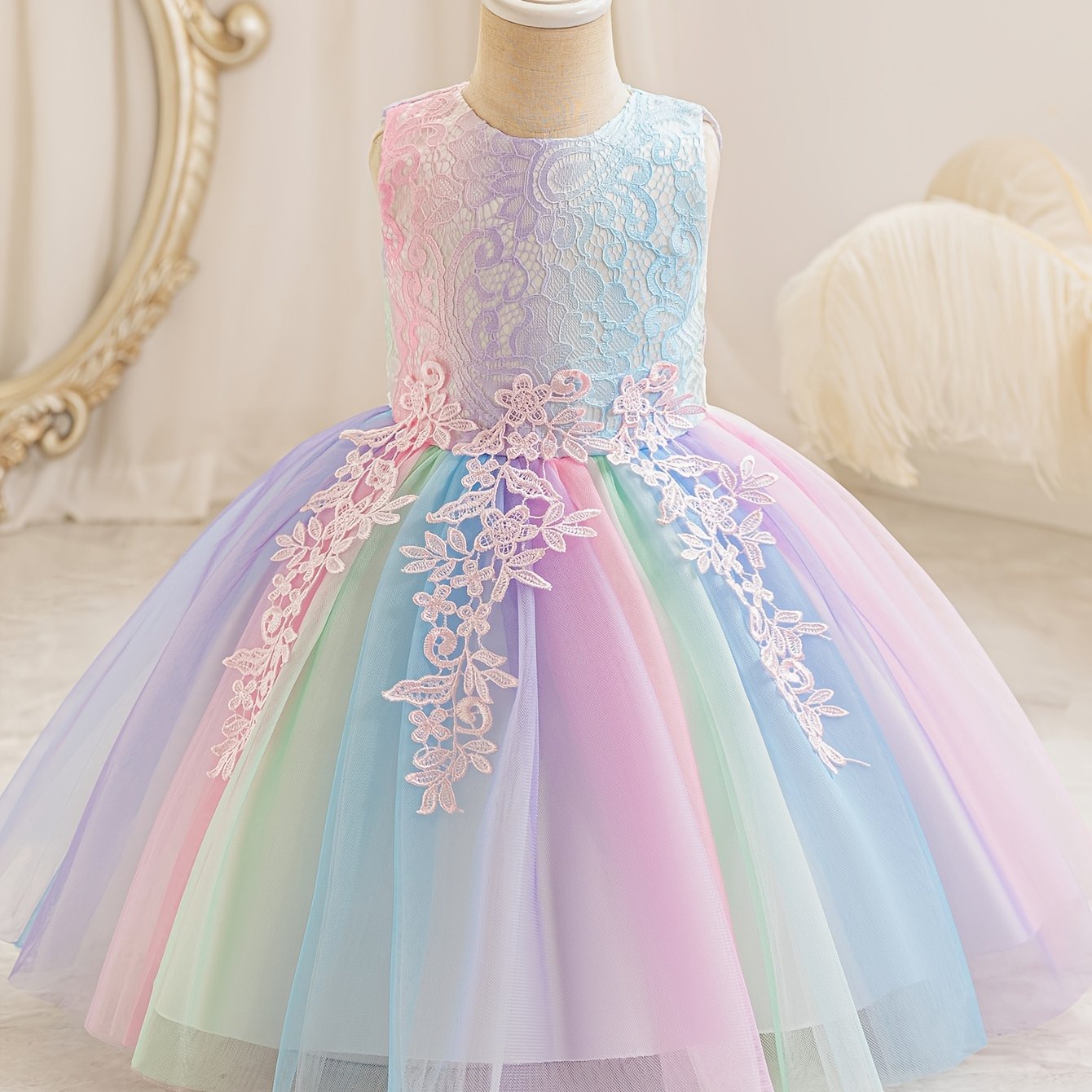 TEMU Rainbow Princess Tutu Dress For Girls - Sleev...