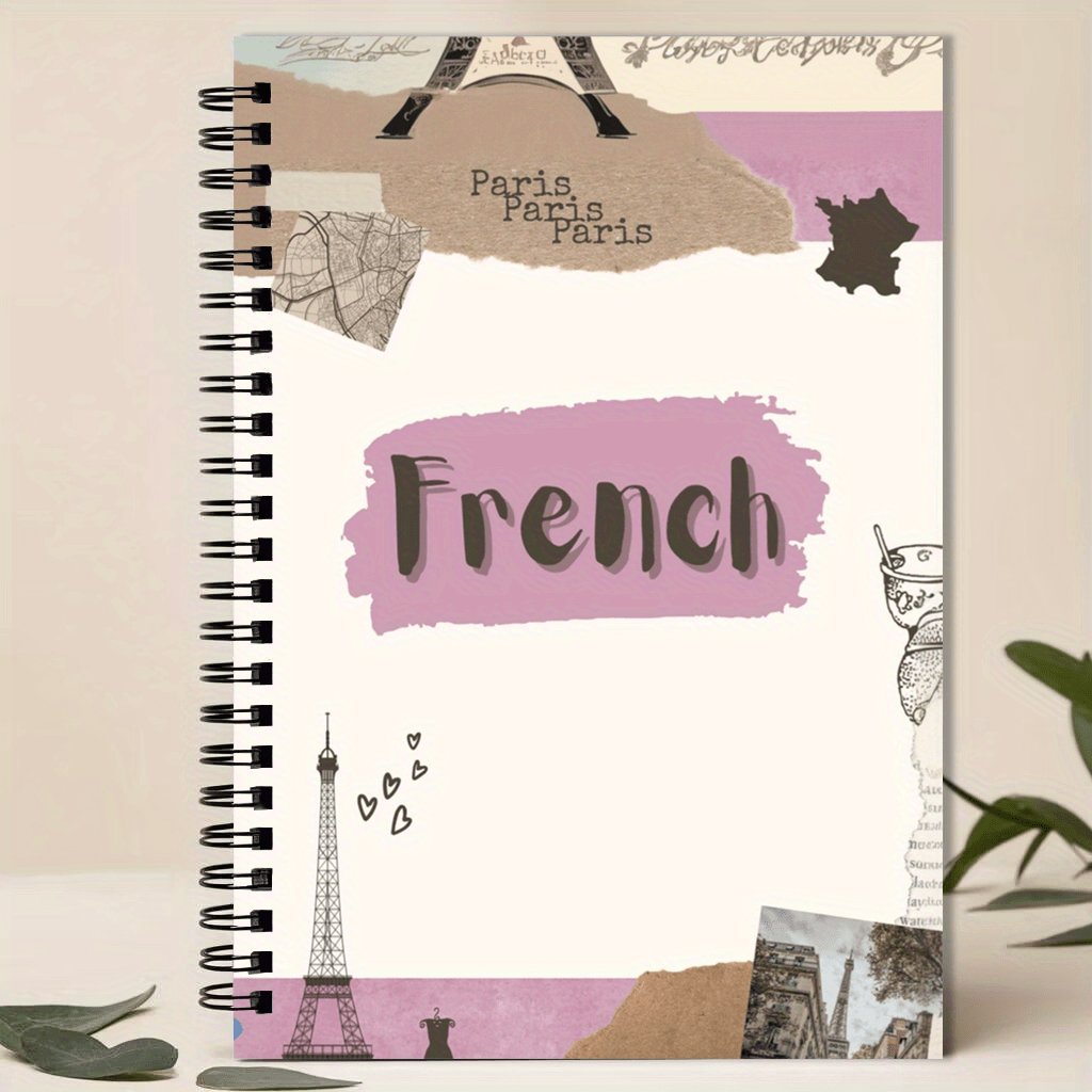 TEMU French-themed Spiral Notebook - 5.5x8.3in, Ha...