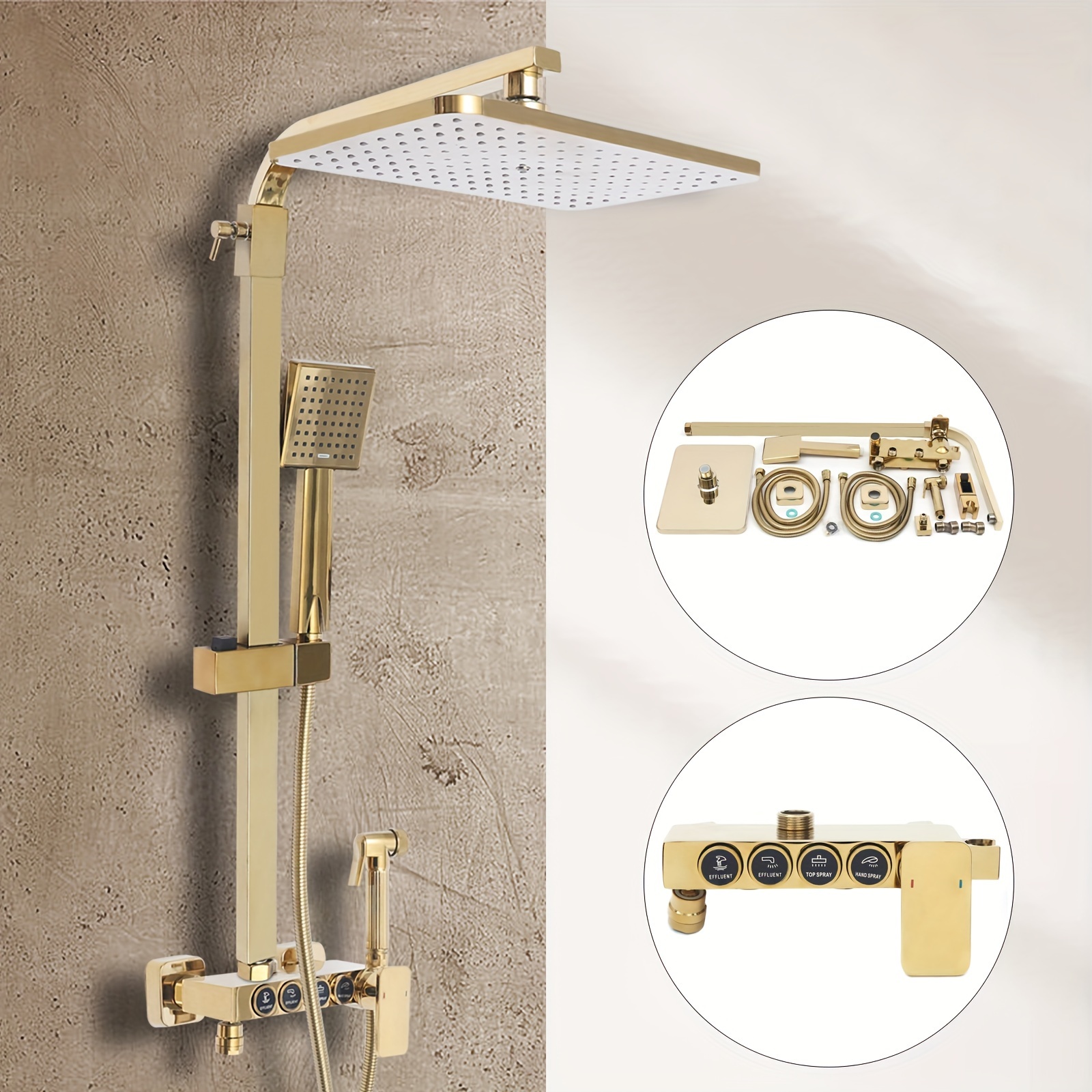 TEMU Shower System With Fitting, 22 Cm Golden Corn...