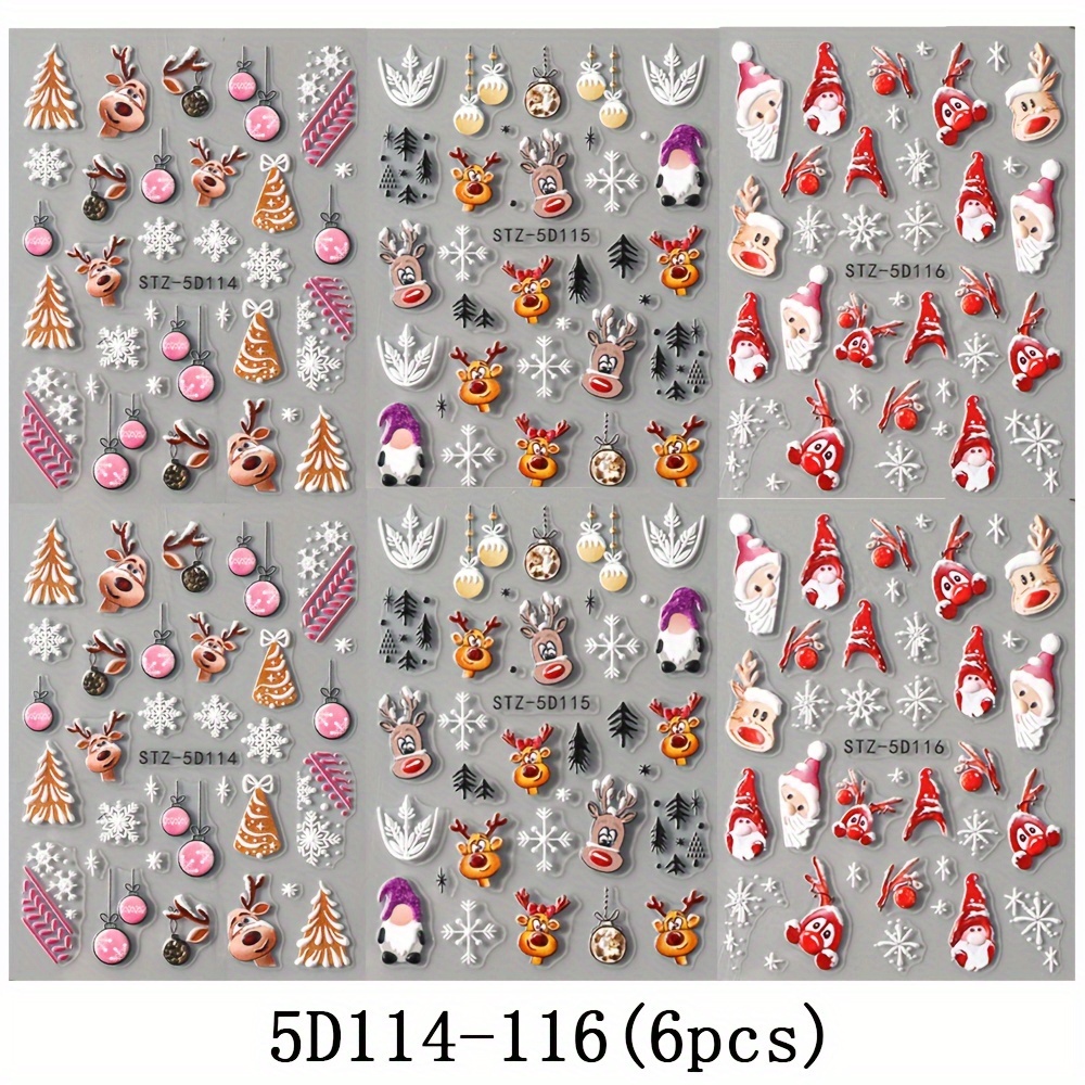 TEMU 6pcs Christmas Nail Art Sticker Set - 5d Embo...