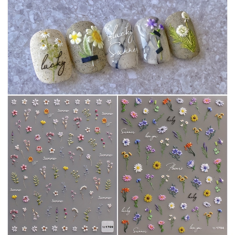 TEMU 2pcs 5d Embossed Floral Nail Art Stickers - F...