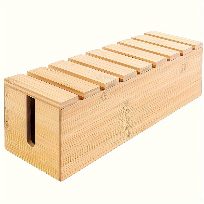 TEMU 1pc Wooden Cable Organizer Box - Versatile St...
