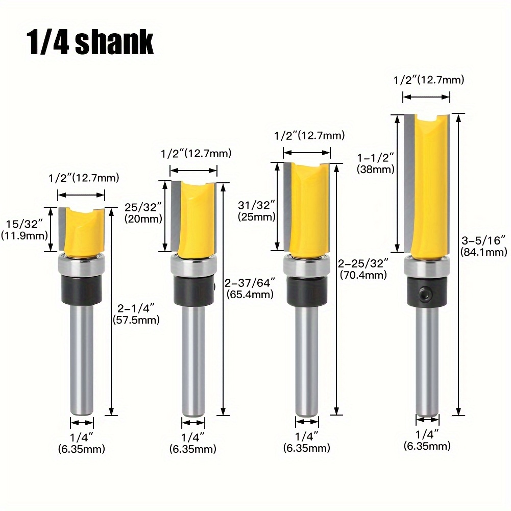 TEMU 1/4" Shank Bearing Straight Cutter, Flush Tri...