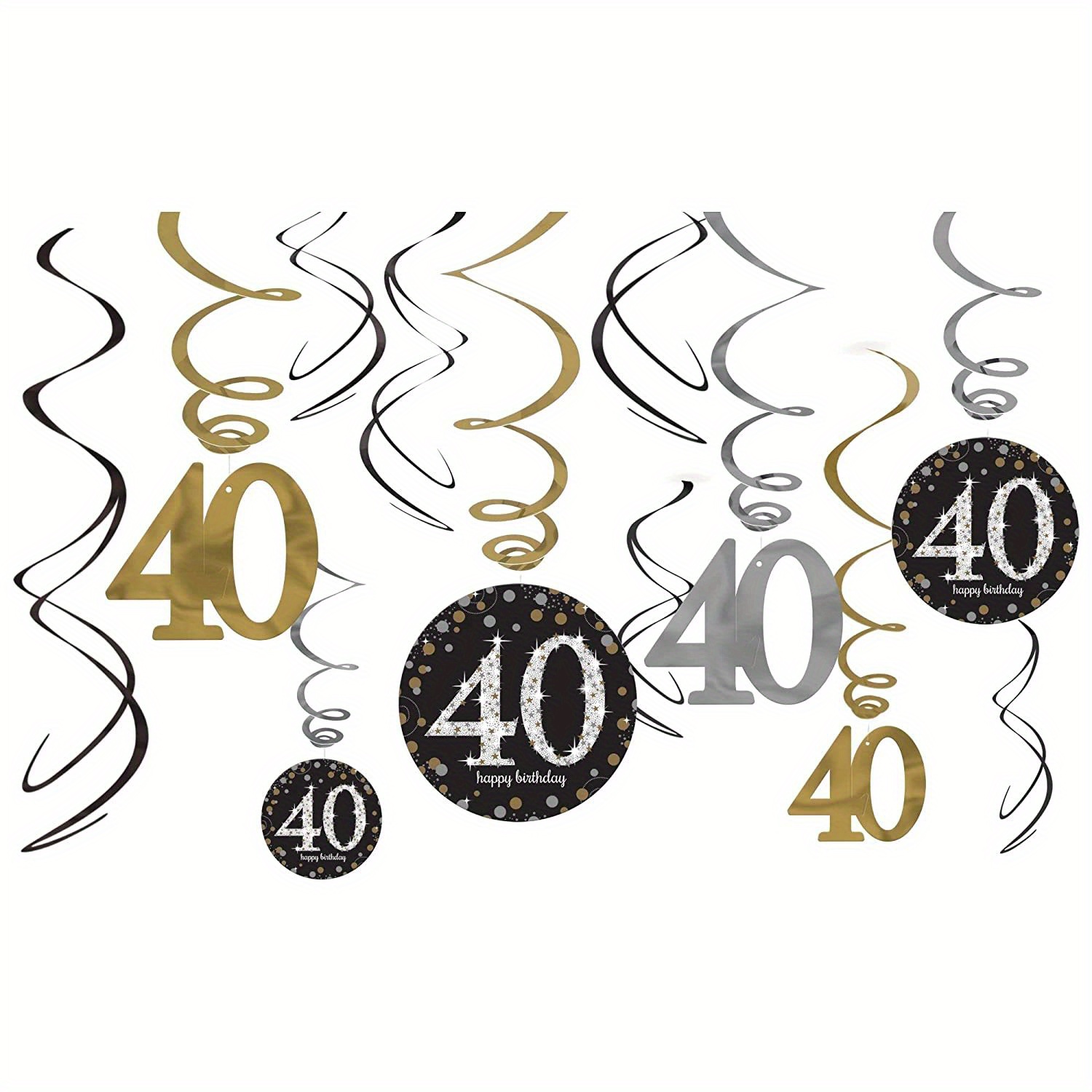 TEMU 12pcs Birthday Black And Golden Pvc Hanging S...