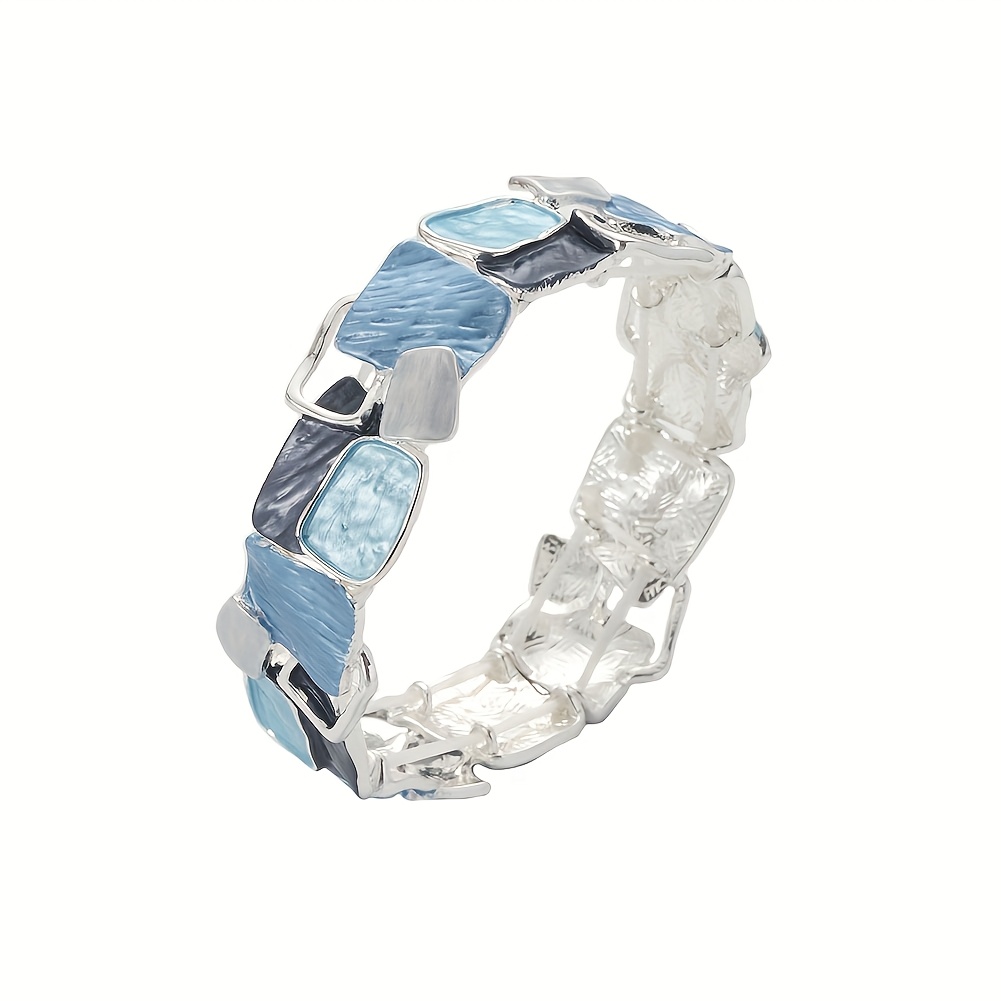 TEMU 1pc Bohemian Stretch Bracelet - Blue Geometri...