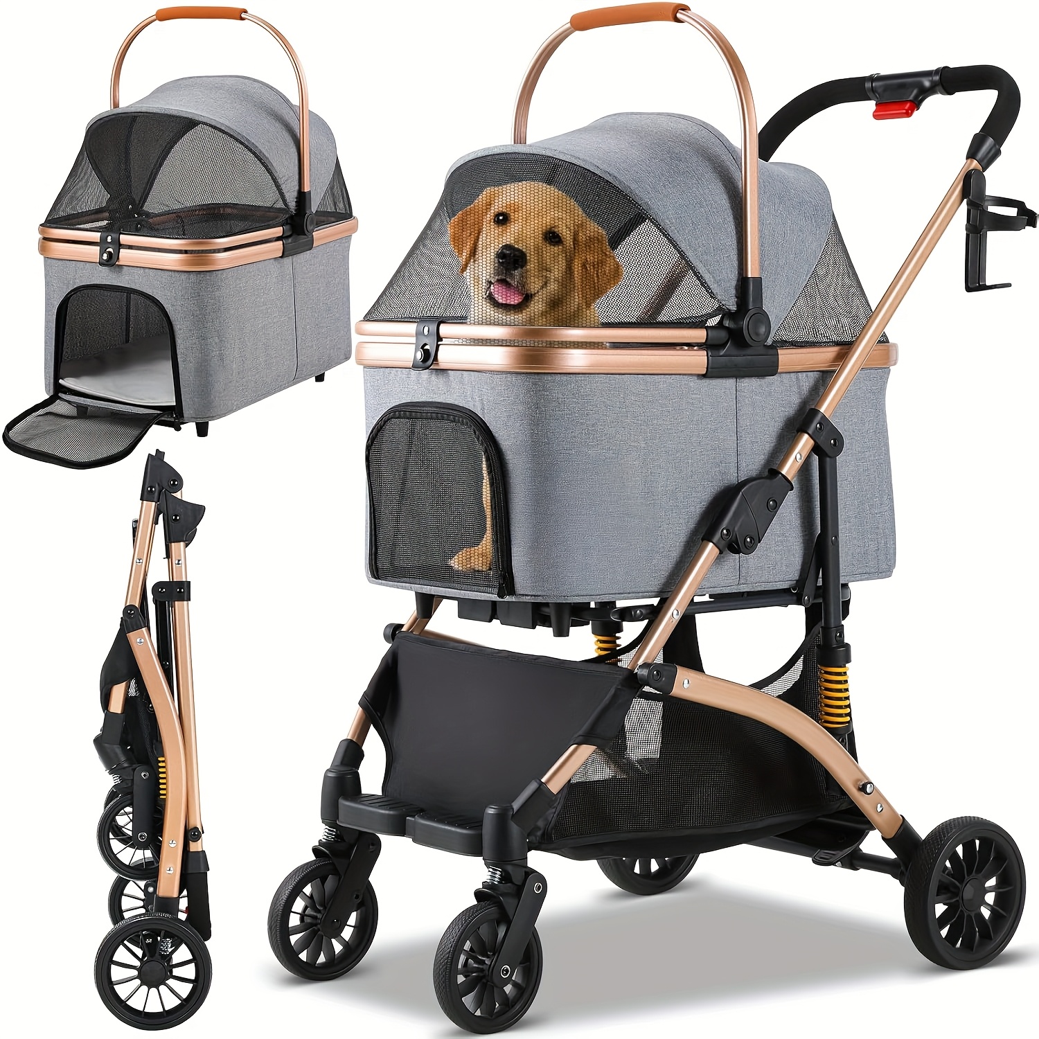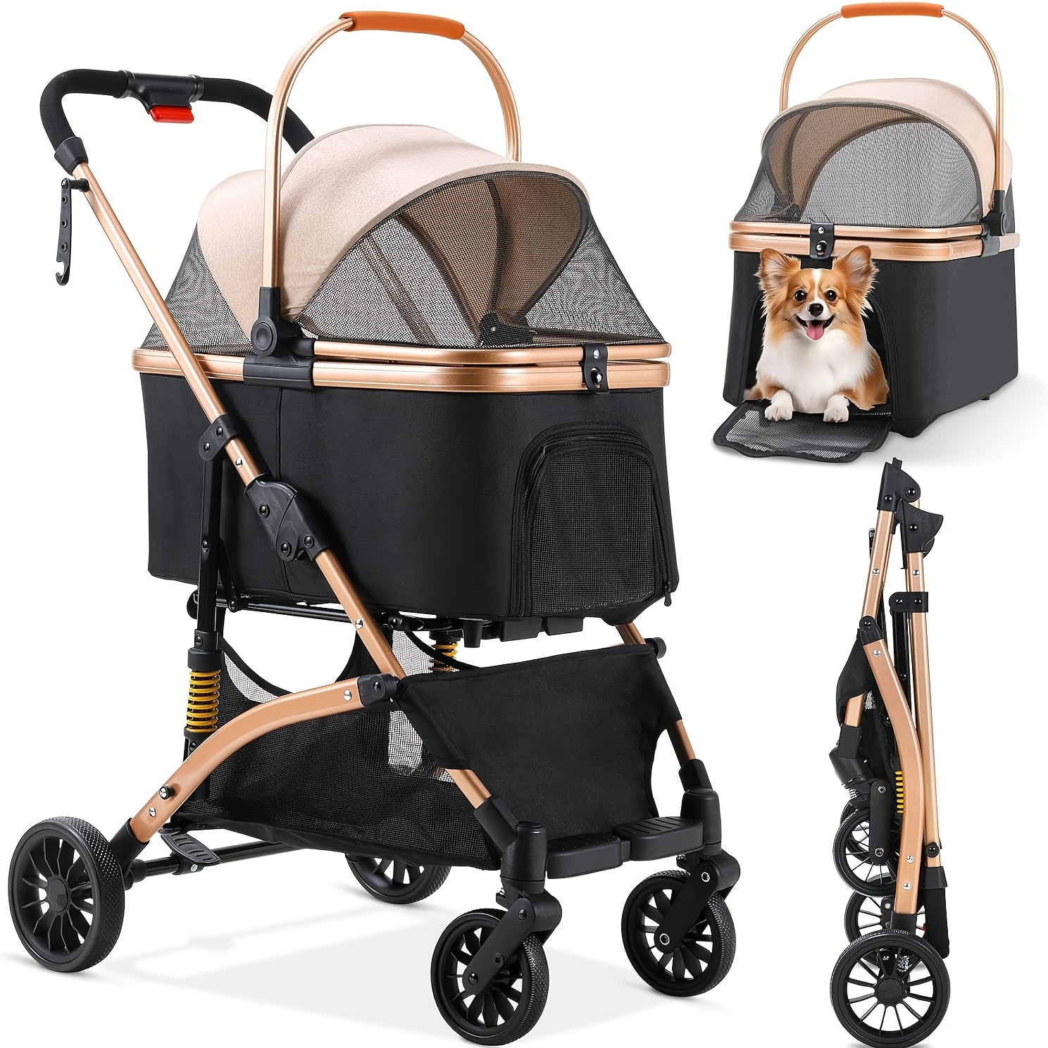 TEMU 3-in-1 Champagne Stroller - Foldable Pet Trav...